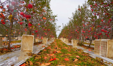 现代化果园管理,种植百万株苹果苗,采用机械化作业提升效率。