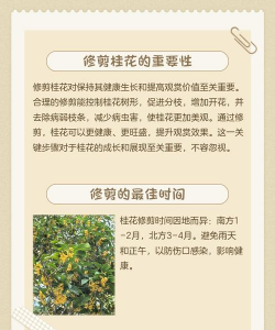 总结:春季和秋季是桂花修剪的主要时期,春季以促生长为主,秋季以塑形和养护越冬为主,冬季可适度修剪。具体操作需结合树龄、生长状况及环境条件调整。
