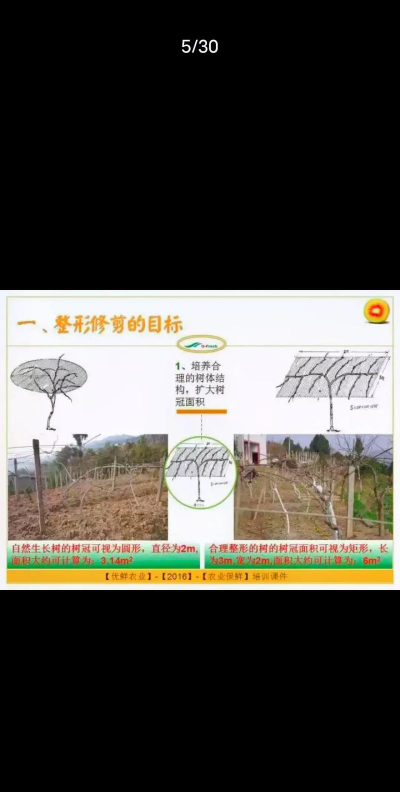 - 5年以上老树可保留3-14个结果母枝,均匀分布形成“T型架”或一字形。