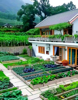 - 以自然植物为主景,搭配木栅栏或防腐木围墙,营造清新田园氛围。推荐种植瓜果蔬菜与花卉,形成层次分明的景观。