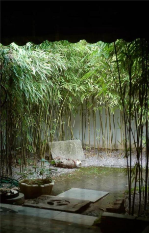 选择观音竹、凤凰竹等低矮竹种,在屋基、墙角种植,以柔化生硬的几何线条。