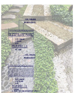 - 汀步路: 通过不同高度的碎石或石材组合营造立体感。 - 砾石路/砂砾石路
