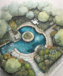 - 欧式风格喷泉与中式园林元素融合,例如通过几何造型呼应山水意境。