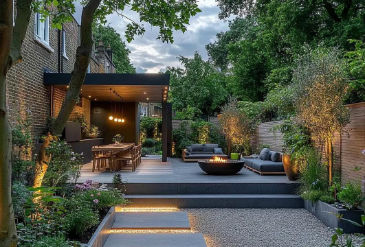 针对有大树的庭院设计,可结合以下策略实现美观与实用性的平衡:地面硬化与抬升 -...