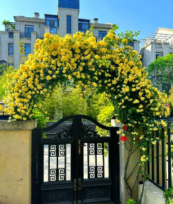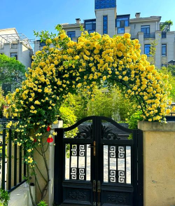 - 选择开放式框架设计,搭配铁链或网格,适合攀爬玫瑰、铁线莲等植物。 - 可定制不同颜色和形状,适应现代别墅风格。