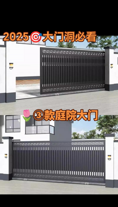 外侧平移庭院大门的设计需结合功能需求与风格定位,以下是关键设计要点及建议: