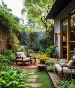 针对有大树的庭院设计,可结合以下策略实现美观与实用性的平衡:地面硬化与抬升 -...