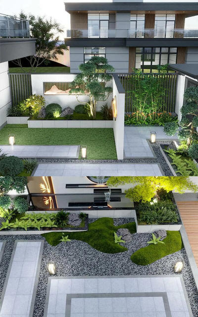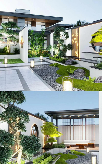 打造假山溪流、喷泉或池塘,增加空间灵动性。