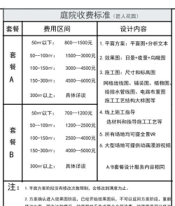 二、费用范围参考基础设计服务: 每平方米200-500元,包含平面图、植物建议等基础服务。