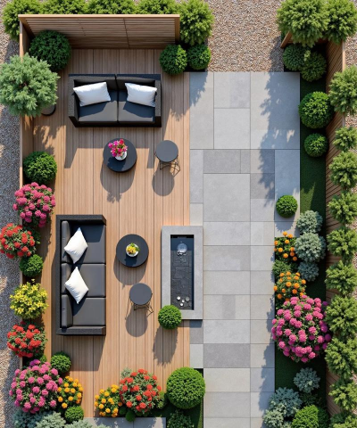 针对有大树的庭院设计,可结合以下策略实现美观与实用性的平衡:地面硬化与抬升 -...