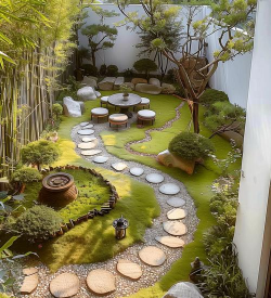 - 中式庭院:青石板、文化石等传统材料;