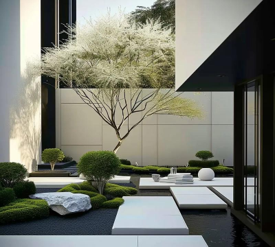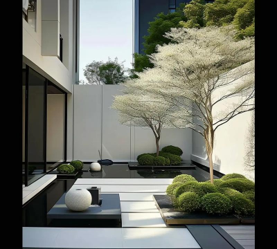 通过剔除冗余元素,实现空间与心灵的宁静。庭院设计强调功能与美感的平衡,例如仅保留必要的植物、家具和装饰,通过简洁的线条和几何形态传递优雅内涵。