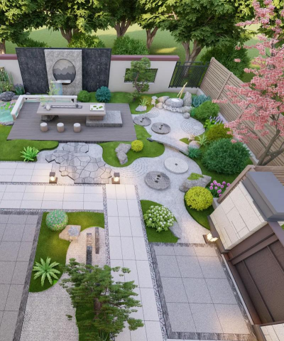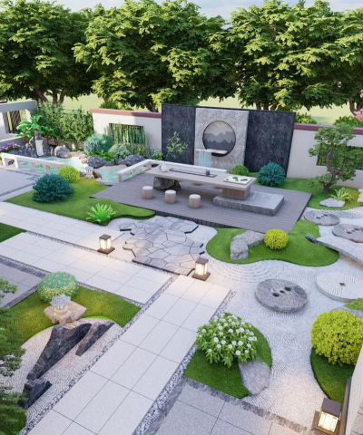 - 根据建筑风格选择对应庭院风格(如中式曲径通幽、日式禅意、现代几何线条),保持整体协调性。 - 允许混搭风格,但需控制主次比例(如70%主风格+30%点缀)。
