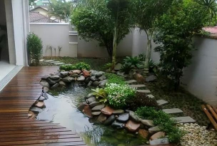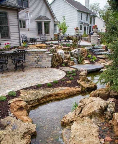 - 水景设计: 在庭院中央打造小型湖泊或水池,与河水形成呼应。水景宜浅(不超过0.6米)且保持流动,可设置仿古风格木桥连接。 - 生态元素
