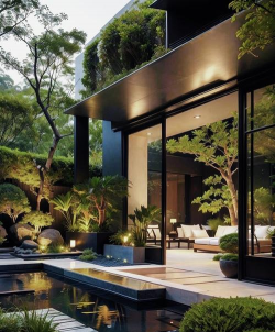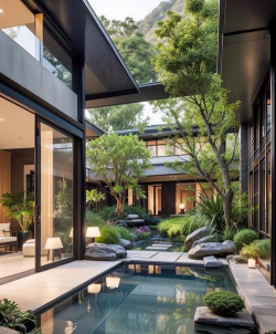 - 以简洁线条为主,搭配喷泉、池塘等元素,提升灵动性。