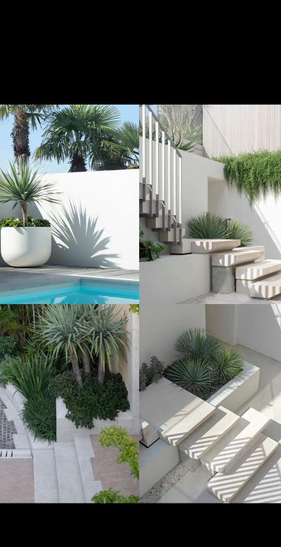 - 根据庭院深度选择楼梯类型,如悬空式、旋转式或层叠式,以节省空间并提升视觉效果。