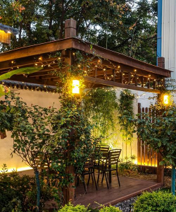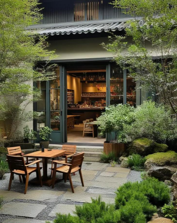 以自然与人文结合为核心,打造兼具私密性、舒适性与景观性的户外用餐空间。通过简化设计语言,突出木质元素与绿植的搭配,营造出田园、禅意或现代简约的风格。