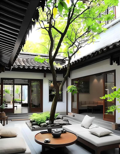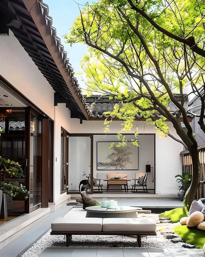 :结合传统与现代的中式庭院,注重空间布局与植物搭配,作品以灵动自然著称。王文泉