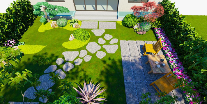 四、典型设计案例日式禅意花园: 以碎石铺就小径,搭配苔藓植物和低矮灌木,营造静谧氛围。 地中海风格庭院