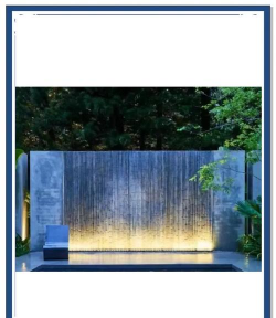 - 与周围环境协调,例如在客厅设置小型水幕墙作为背景,或在户外与绿化植物结合形成生态景观。