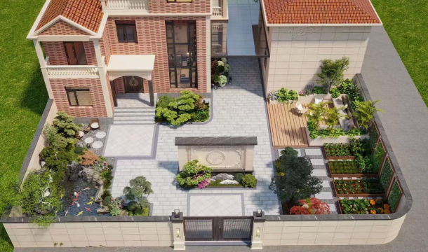 私密与开放平衡:设置隐蔽围墙、绿篱等保障隐私,同时设计开放空间供休闲活动。