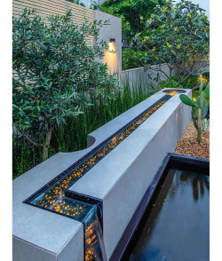 水景墙通过流动水体与静态建筑形成鲜明对比,例如: