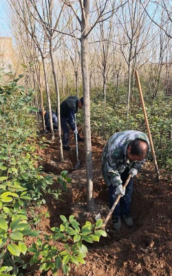 移栽时尽量保留完整的根系,尤其是乔木类。