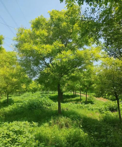 以种植观赏树、绿化苗木为主,如国槐、白蜡、银杏等。