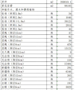 不同的树种、灌木、花卉等,对空间的需求不同,因此每平方米的种植数量也不同。以下是一些常见植物的参考密度: