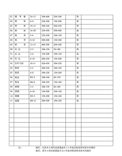 在苗木表中,“小叶白蜡规格”通常指的是该树种的胸径(DBH)、高度、冠幅、地径等参数。以下是常见的规格表示方式和说明: