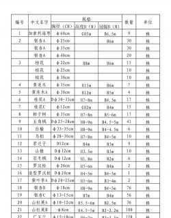 以下是一些常见的河南苗木明细表中可能包含的内容:
