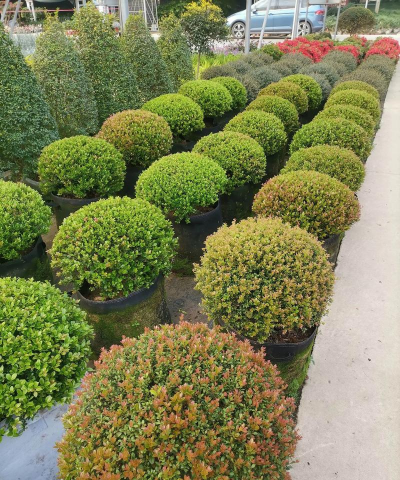 红叶石楠、金森女贞、小叶黄杨、大叶黄杨、冬青、月季、玫瑰、紫荆、丁香、木槿、夹竹桃、金叶女贞、红花檵木、龙柏、黄杨球等。