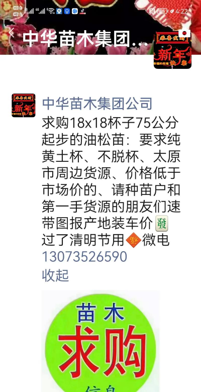 在湖北本地的“苗农交流群”、“绿化工程群”中发帖求助。