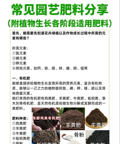 有机肥:如腐熟的农家肥、堆肥、厩肥、饼肥等,能改善土壤结构,增强土壤保水保肥能力。