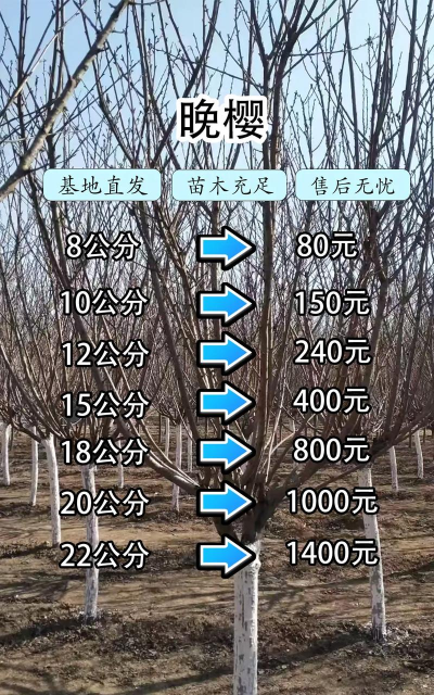 绿化苗木的价格因品种、尺寸、季节、市场需求等因素而异。以下是一些常见绿化苗木...