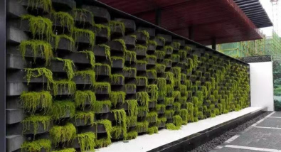 植物墙定义:植物墙是由多层垂直的植物组成,植物之间有一定的空隙,以便灌溉和通风。