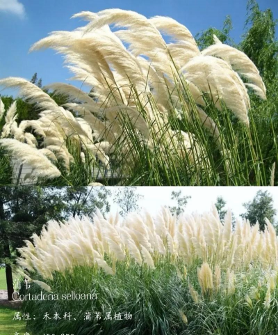 花叶芒:花叶芒株高1.5~1.8m,叶片呈拱形,花期9~10月,观赏性好。