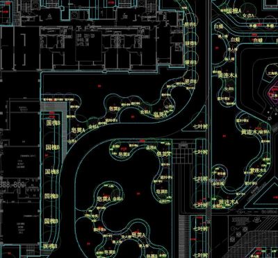 品种选择要考虑植物色彩、花果期实时序,常绿树、落叶树,以及植物的生态效益和观赏价值。