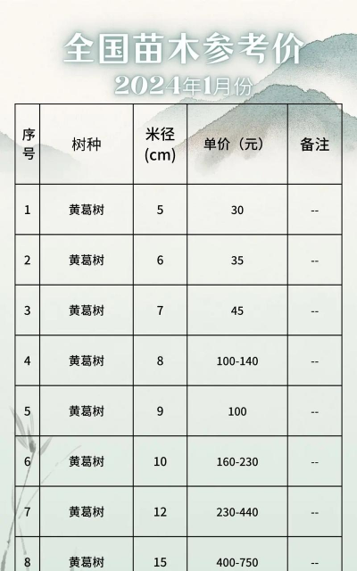 这些价格仅为参考,具体价格会受到多种因素的影响,如苗木品质、尺寸和数量等,以及市场供需关系和季节变化等。