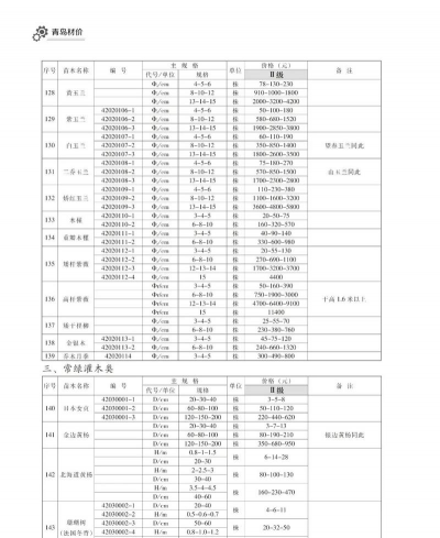 绿化苗木的价格因品种、尺寸、季节、市场需求等因素而异。以下是一些常见绿化苗木...
