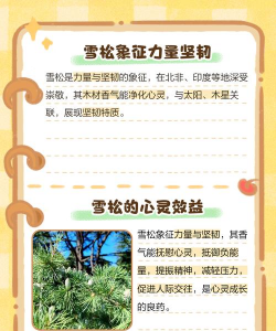 防护作用雪松具有较强的光合作用能力,能吸收较多的CO2并放出O2,其挥发性分泌物具有杀菌能力,能产生负离子,有助于改善空气质量和增强免疫力。