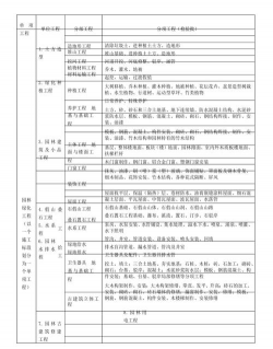 园林建筑及附属设施项目特征:包括园路广场、园林小品、理水、建筑装饰、建筑结构、绿地给水、绿地排水、卫生器具、景观照明等。