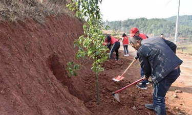 位于永丰县瑶田镇,村民正在进行苗木管护,主要树种包括香樟、桂花、红叶石楠、红豆杉等。