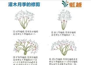 因时修剪:落叶花灌木依修剪时期可分冬季修剪(休眠期修剪)和夏季修剪(花后修剪)。冬季修剪一般在休眠期进行,夏季修剪在花落后进行,目的是抑制营养生长,增加全株光照,促进花芽分化,保证来年开花。