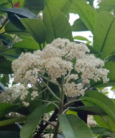 石楠(学名:Photinia serratifolia (Desf.) Kalkman)是一种 常绿灌木或小乔木,高4-6米,有时可达12米。石楠的枝褐灰色,无毛;叶片革质,长椭圆形、长倒卵形或倒卵状椭圆形,叶柄粗壮,复伞房花序顶生,花瓣白色,近圆形,种子卵形,长2毫米,棕色,平滑。花期4-5月,果期10月。石楠木材坚密,可制车轮及器具柄及作枇杷的砧木;叶和根供药用为强壮剂、利尿剂,有镇静解热等作用;又可作土农药防治蚜虫,并对马铃薯病菌孢子发芽有抑制作用;种子榨油供制油漆、肥皂或润滑油用。