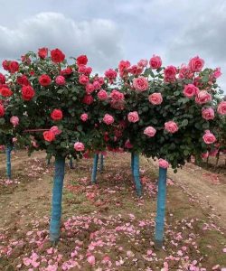 具体来说,月季通常具有丛生的生长形态,茎干较短,在地面附近分枝众多。这种生长习性使得月季非常适合作为花坛或花园边缘的装饰植物。通过嫁接或特殊的栽培技术,月季也可以发展成为乔木形态,形成一个直立、高大的植物,并且通常会有一个统一的主干。然而,这些形态并不是月季的自然生长状态,而是人为培育的结果。
