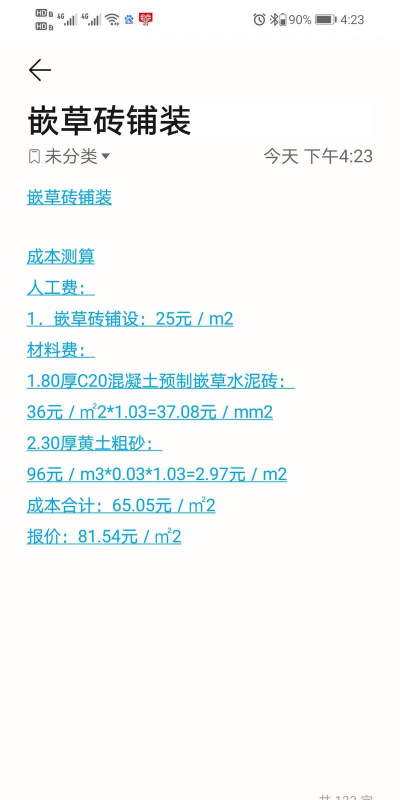 一、草坪砖铺装价格范围基础费用区间