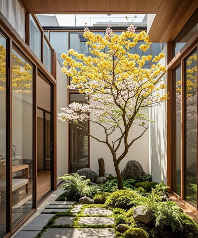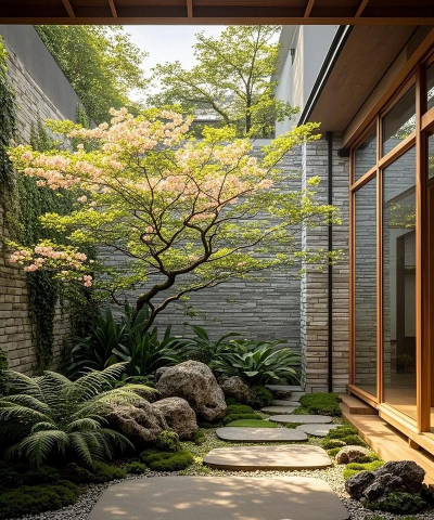 针对有大树的庭院设计,可结合以下策略实现美观与实用性的平衡:地面硬化与抬升 -...