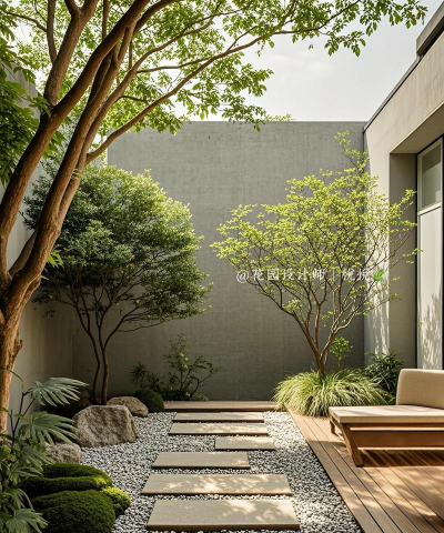 针对有大树的庭院设计,可结合以下策略实现美观与实用性的平衡:地面硬化与抬升 -...