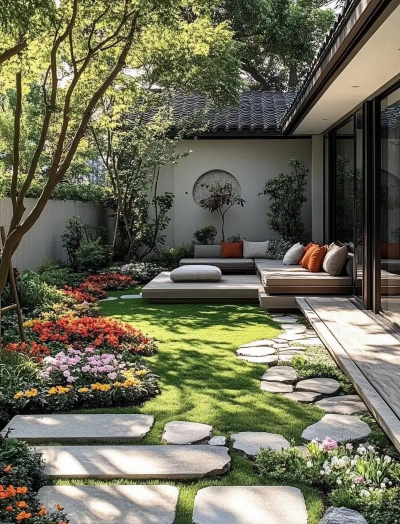 宁波现代庭院设计理念以简约自然为核心,强调功能性与美学结合,具体体现在以下几个方面: